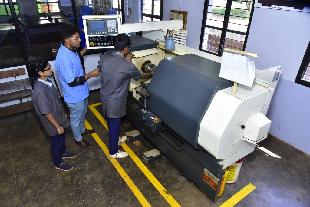 CNC machines and simulation software are provided for Turner and Fitter trainees to develop skills in CNC programming, machine operation, tool setting, and precision component manufacturing aligned with industry standards.